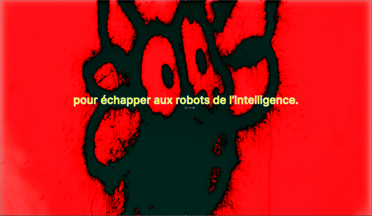 The installation Janet, Joan, Jackson, Joyce and the Robots questions the authenticity of styles in the history of images. It also questions the processes of appropriation and diversion in the field of fragmented art. What is style? What does it mean to be original, and how can one exist as an artist in an era of imitation, tracking and censorship by generative AI? How can one escape detection algorithms? How can we escape the digitisation of our lives and rediscover corporeality in our use of matter?